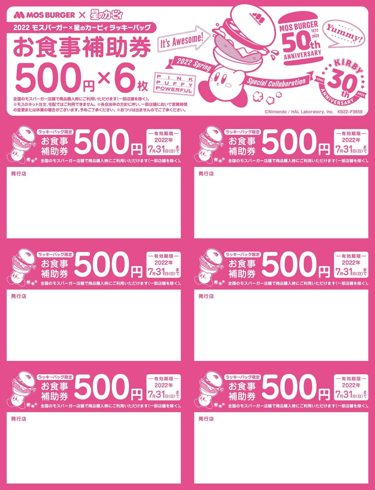 2022年は、モスバーガーが50周年、『星のカービィ』が30周年であることからダブルアニバーサリーイヤーを記念した特別感のあるデザインです。