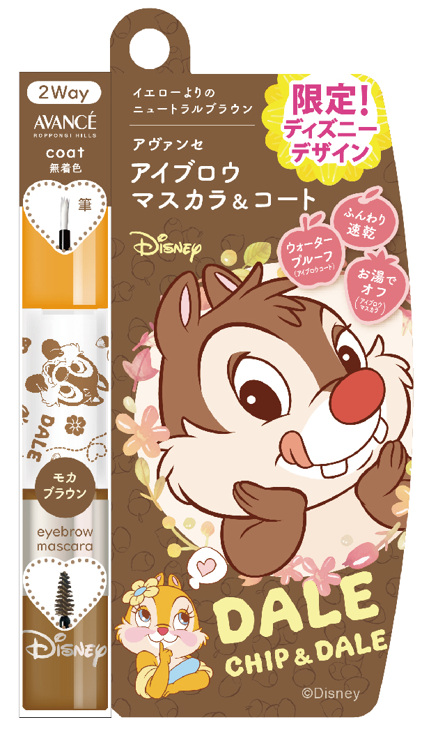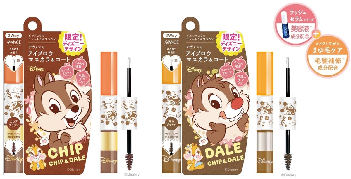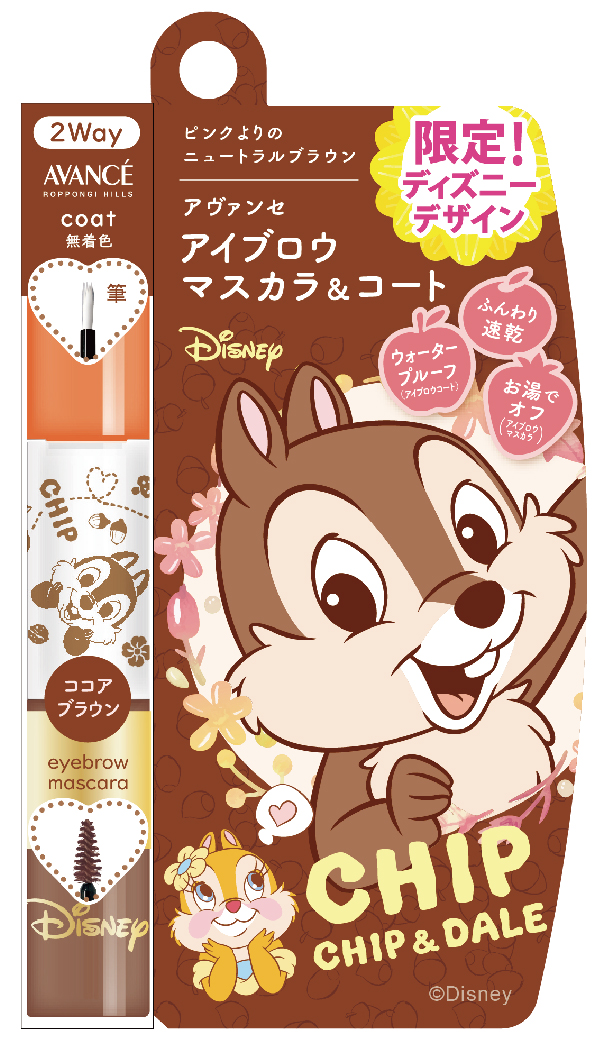 アヴァンセから発売される「アイブロウマスカラ&コート」が、ディズニーキャラクター「チップ&デール」の限定デザインで登場。