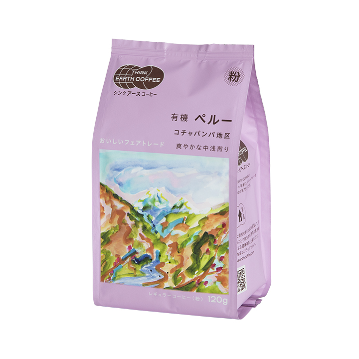 有機ペルー粉120gの中浅煎りのレギュラー粉コーヒー。