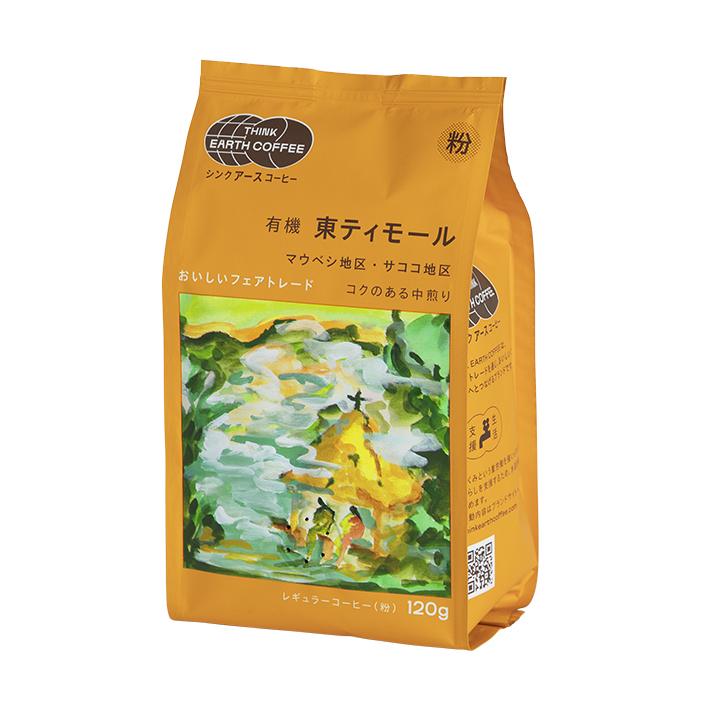 有機東ティモール粉120gの中煎りのレギュラー粉コーヒー。