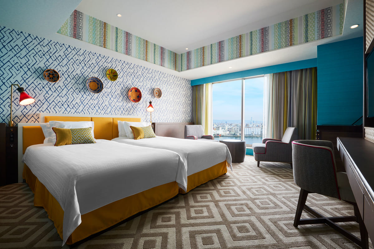 ユニバーサル・スタジオ・ジャパンのオフィシャルホテル「ホテル ユニバーサル ポート」は、パークへ便利にアクセスできる、水をテーマにしたテーマパーク・リゾートホテル。