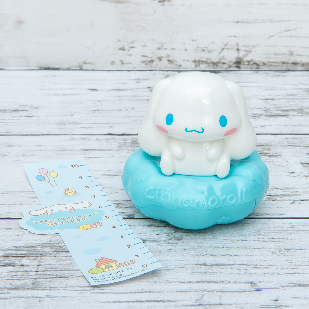 「シナモロール」のメジャーをセットすると、長さが測れるおもちゃ。