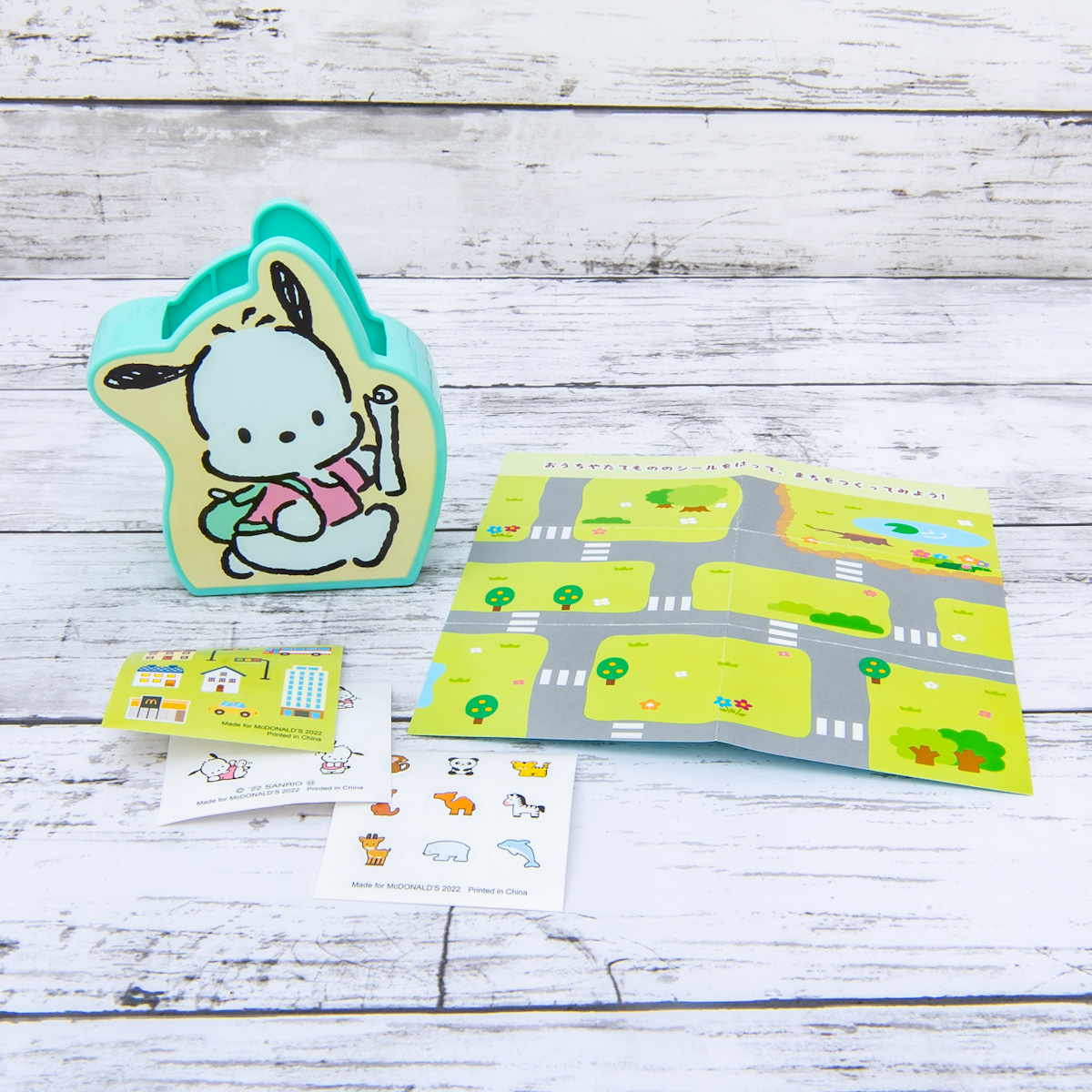 「ポチャッコ」のケースに入った、地図のシートとシールのセット。