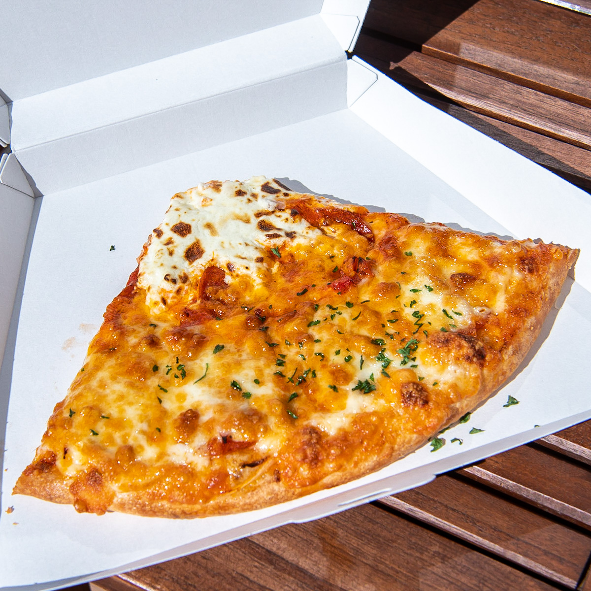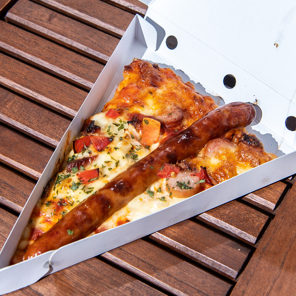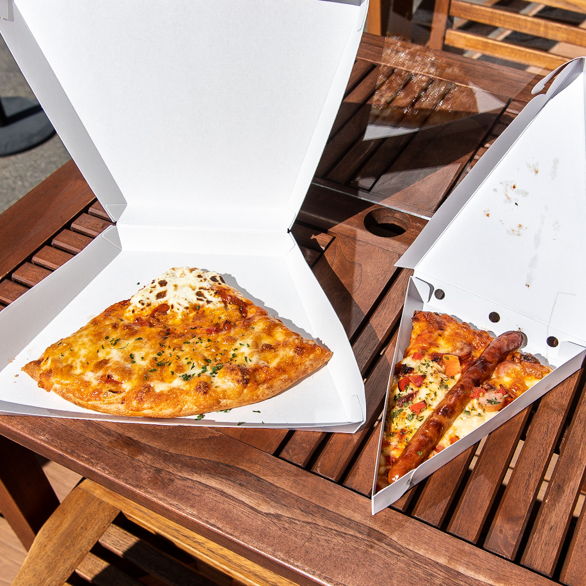 持ち歩きやすいピースにカットされたピザをテイクアウトしてもおすすめです。