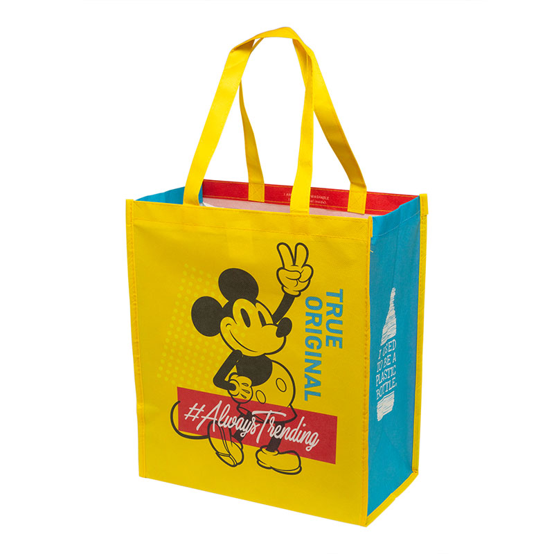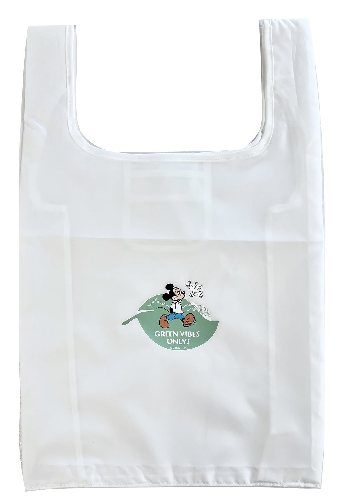 かっこよくピースサインをきめる「ミッキーマウス」が大きくプリントされたサステナブルバッグ。