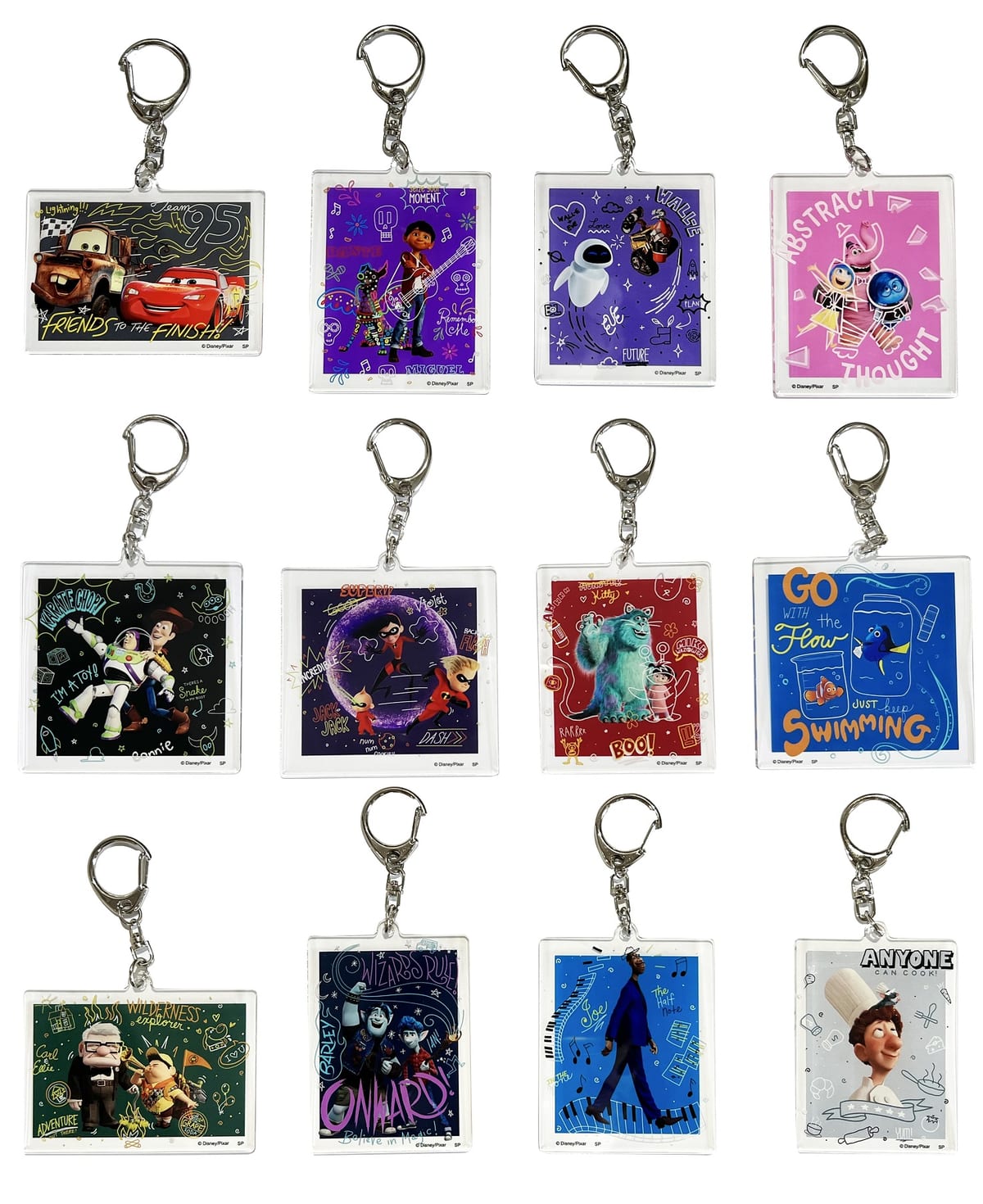 『リメンバー・ミー』や『カールじいさんの空飛ぶ家』のほか『2分の1の魔法』『ソウルフル・ワールド』などのアートも登場するアクリルキーホルダー。