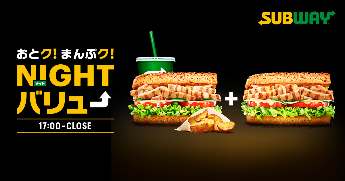 サンドイッチ・チェーンの「サブウェイ」に、夜限定の新しいセットメニュー「NIGHTバリュー」が登場!