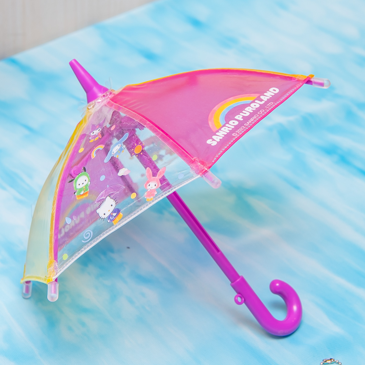 雨の降らない全天候型のピューロランドで、傘をさしながら一緒に踊って楽しめるグッズです☆