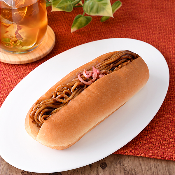 湯種を使用した、しっとりふんわりとした食感のパン生地に、濃厚なソースを絡めた焼きそばを挟んだ「濃い旨ソース!焼きそばドッグ」