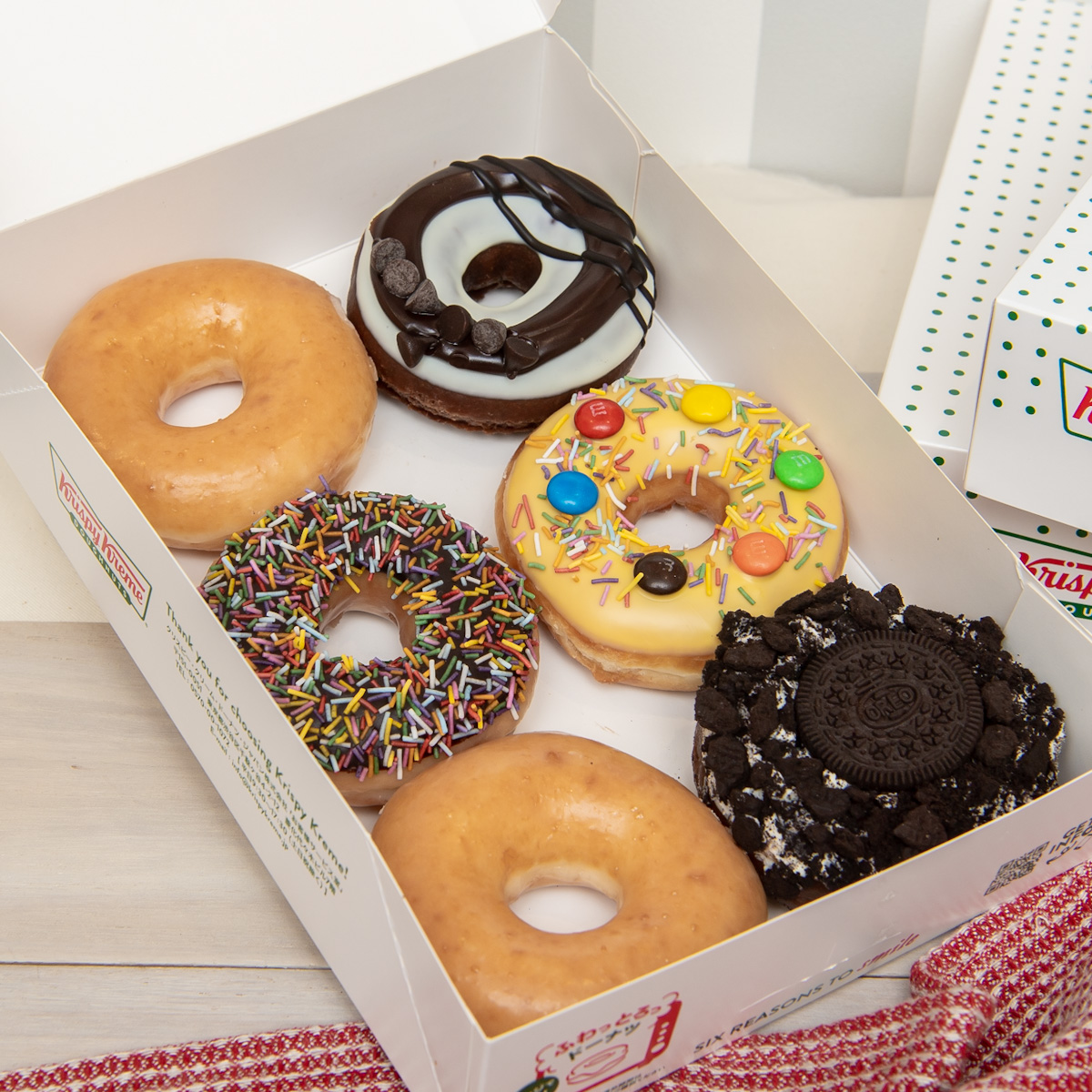 人気の「オリジナル・グレーズド」と「チョコ スプリンクル」も入った、どれを食べても笑顔になれる12個入り。