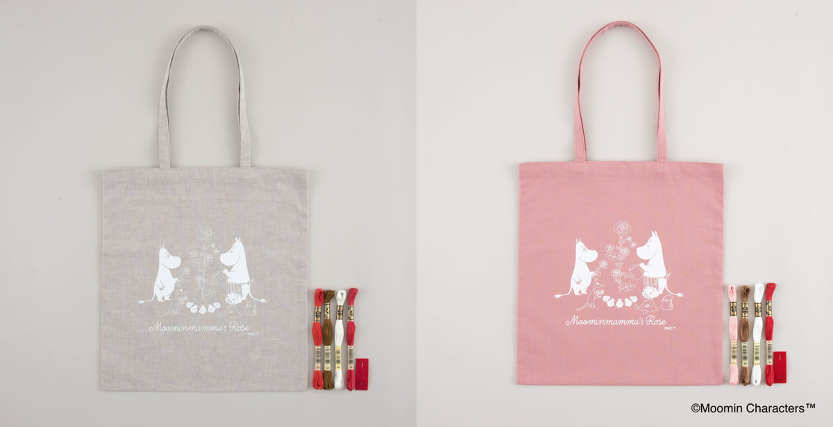 仕立て済のトートバッグに、印刷された図案通りに刺繍をすると「Moominmammaʼs Rose」の柄が完成します!