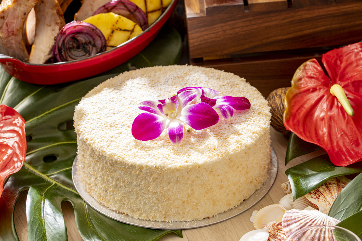 ココナッツクリームを挟んだスポンジケーキをココナッツクリームでコーティング。