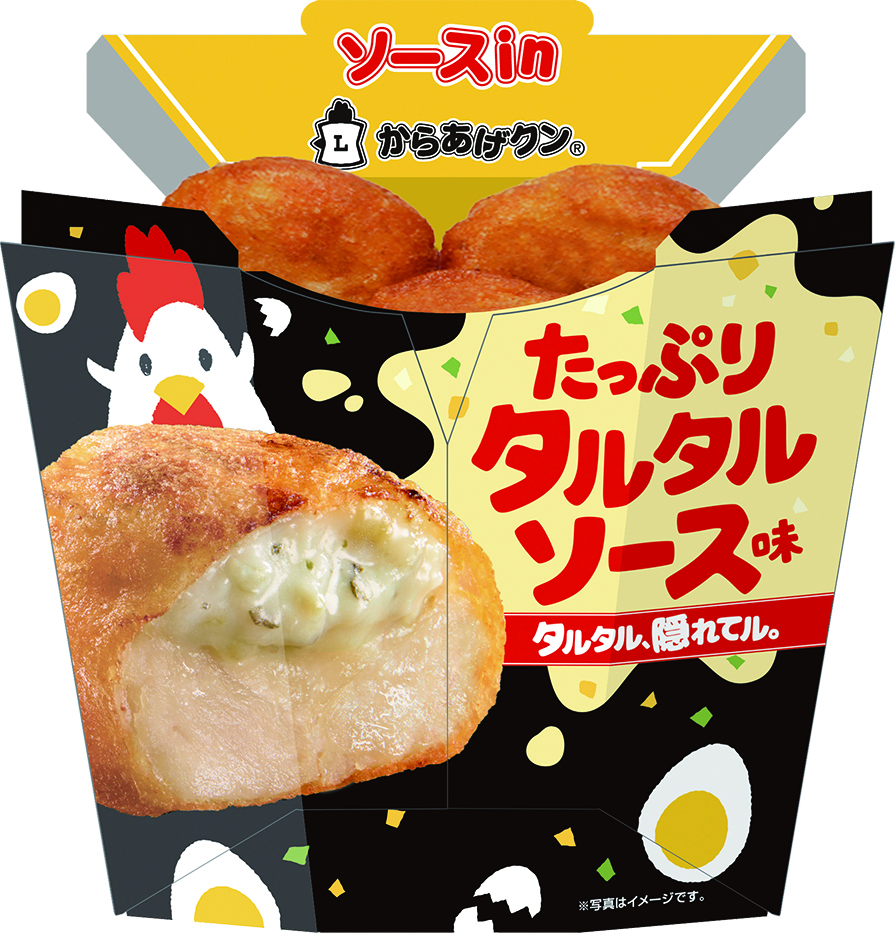 第1弾として、ピクルスや玉ねぎなどが入った、なめらかな食感のタルタルソースをたっぷり入れた「からあげクン たっぷりタルタルソース味」が登場します。
