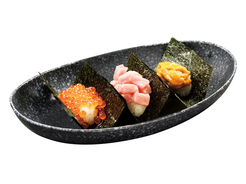 人気が高く豪華な「いくら、とろ、うに」の3ネタを一度に味わえる、贅沢なメニューです!