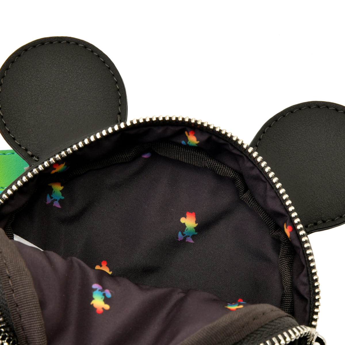 内側の生地も虹色の「ミッキーマウス」シルエットをあしらった総柄プリントです。