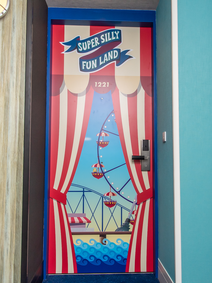 遊園地「スーパー・シリー・ファンランド」の雰囲気そのままの客室