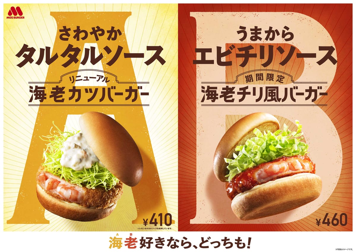 モスバーガー「海老チリ風バーガー」「海老カツバーガー」
