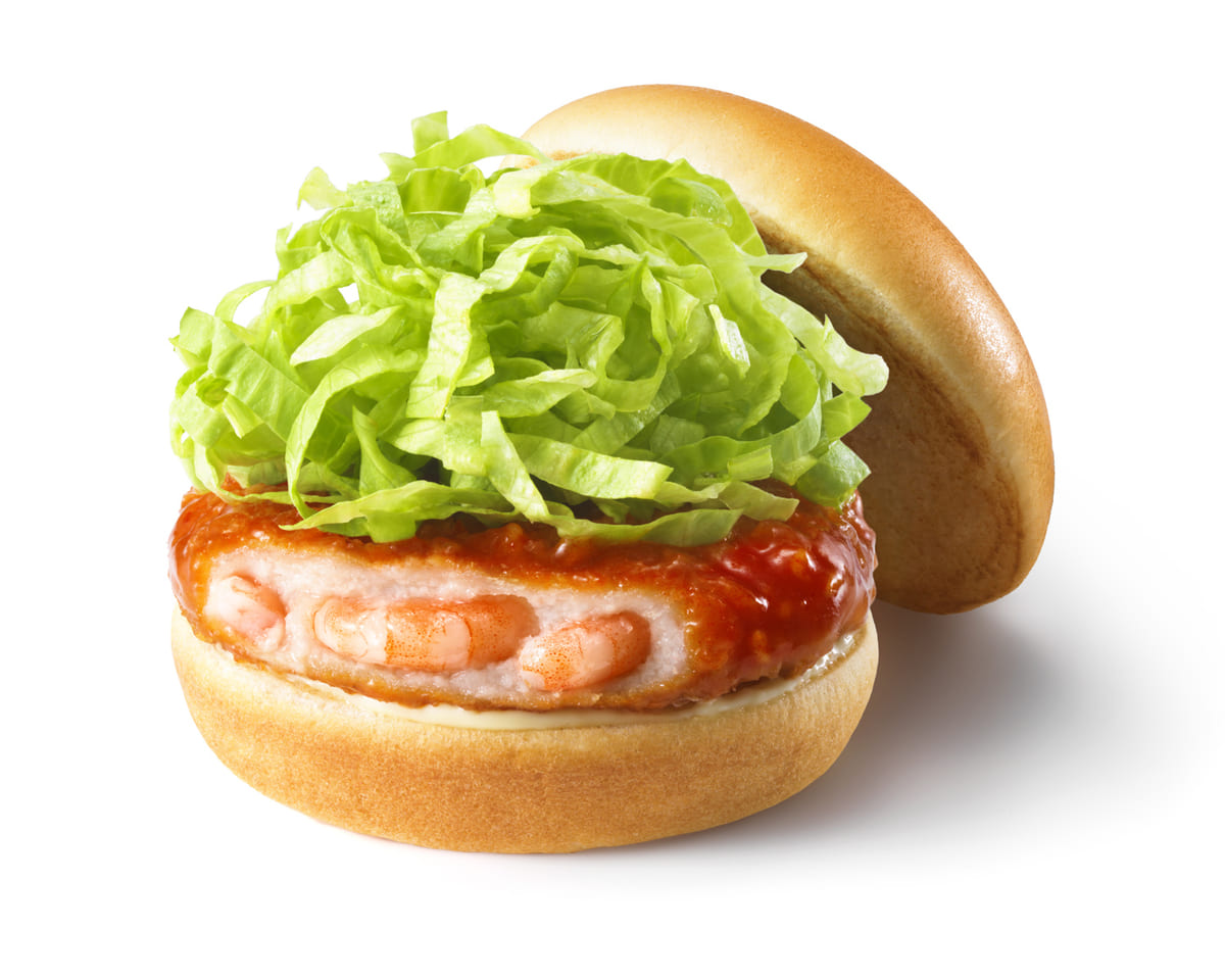 「海老チリ風バーガー」の発売に合わせ、定番メニューの「海老カツバーガー」もリニューアル。