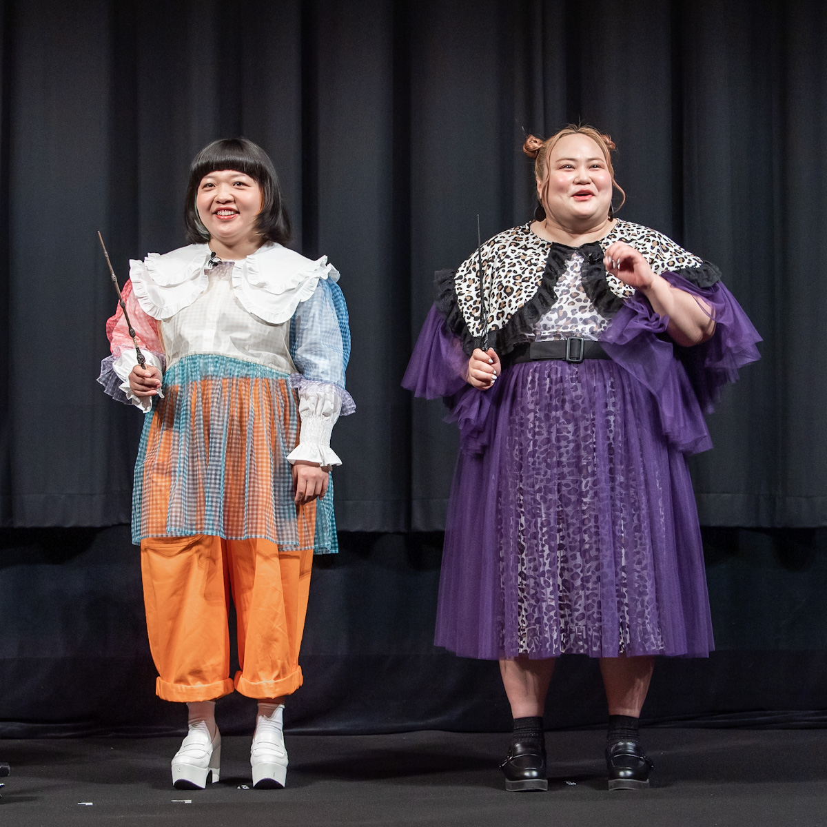 おかずクラブのふたりが使ってみたい魔法について聞かれると、ゆいPさんは「食べたものの糖分以外は体から抜けるような魔法があったらいいなあ」と、夢のある魔法ワールドに思いを馳せる一方、オカリナさんは「グリンデルバルドがやってた嫌な記憶をぴゅっと抜くやつよかったよね、あれでスベった収録の記憶を抜きたい」と芸人ならではの使い道を説明。