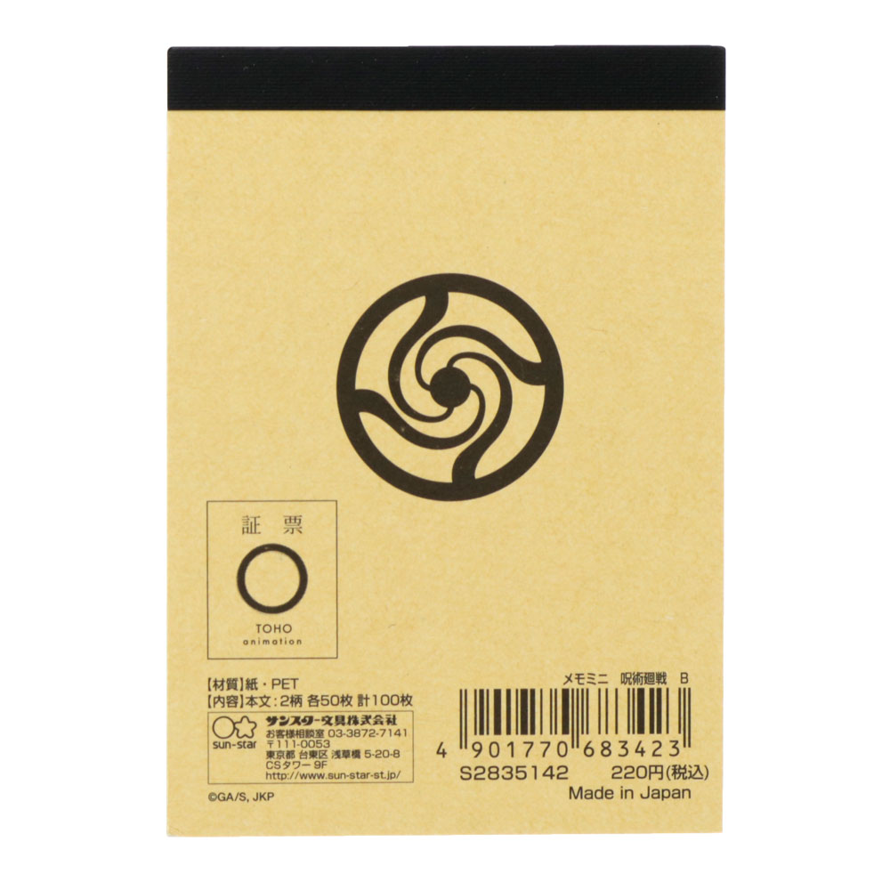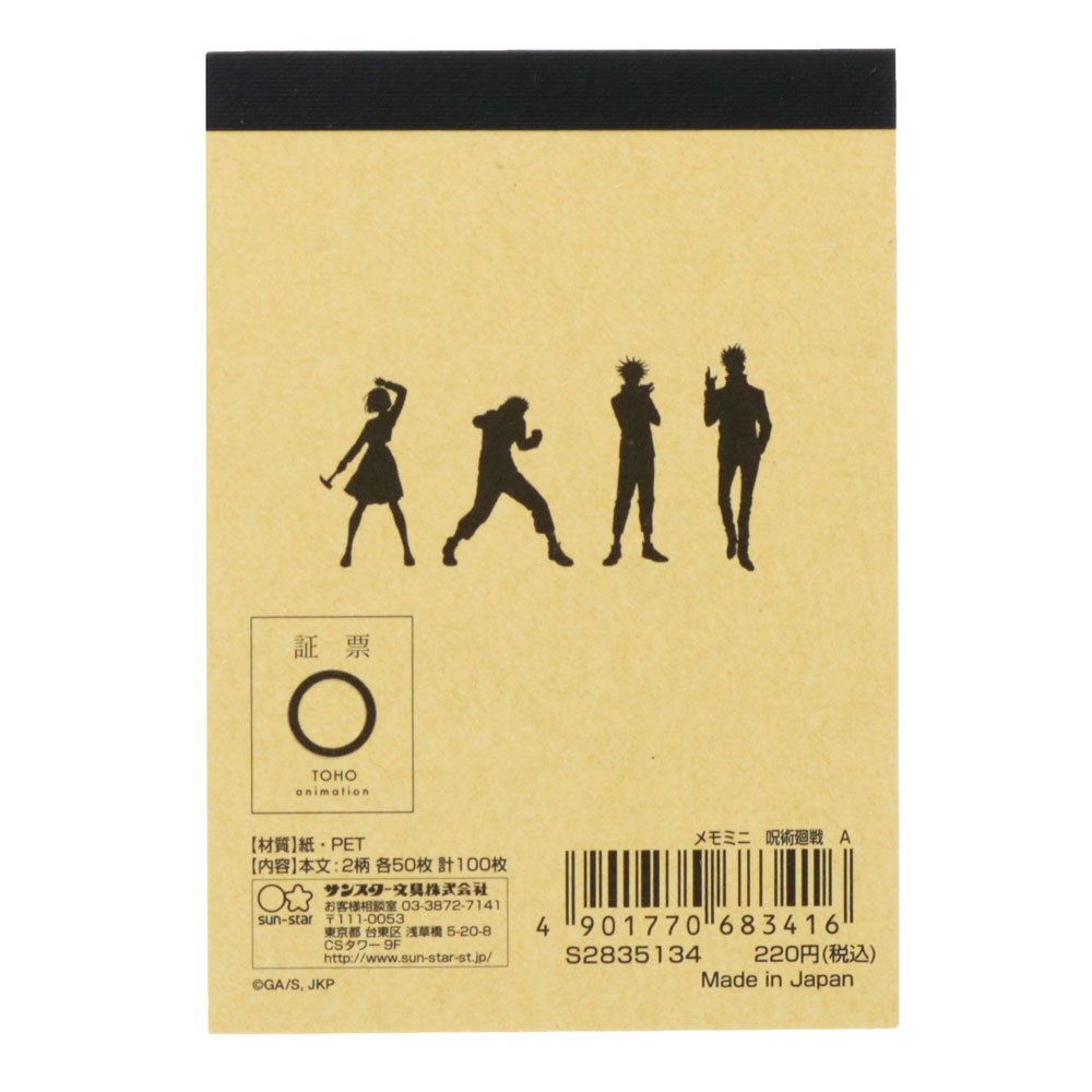 『呪術廻戦』のロゴがクールに配置されたAデザインのメモミニ。