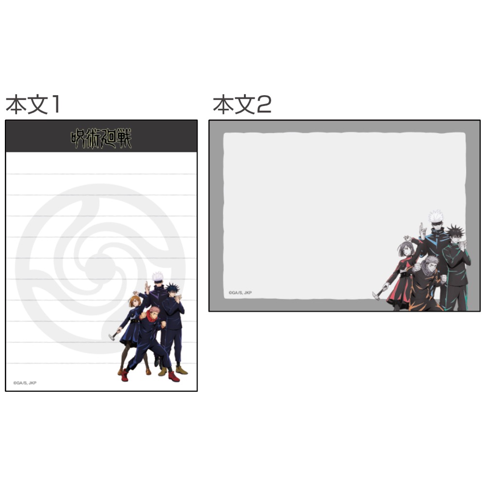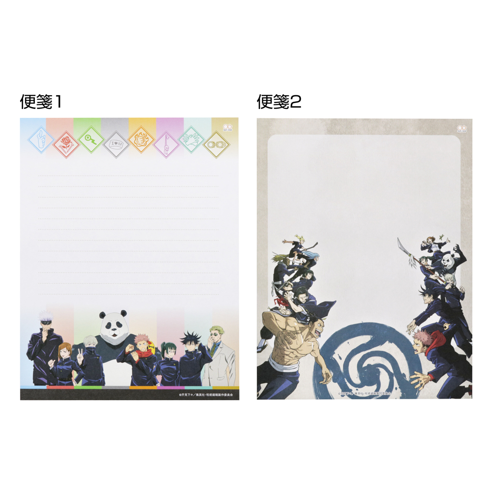 便せん2柄と封筒2柄がセットになった、TVアニメ『呪術廻戦』デザインのレターセット。