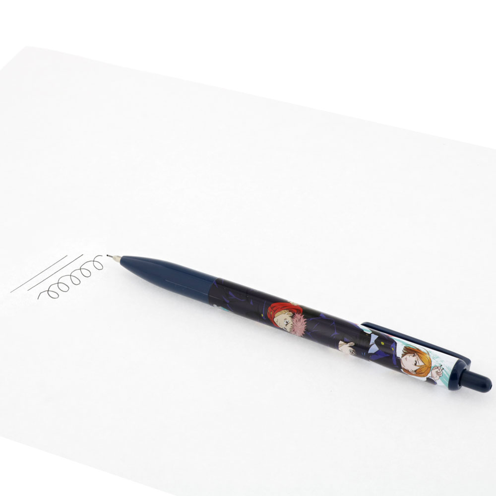ペン軸に『呪術廻戦』の魅力的なキャラクターたちがデザインされたシャープペン。