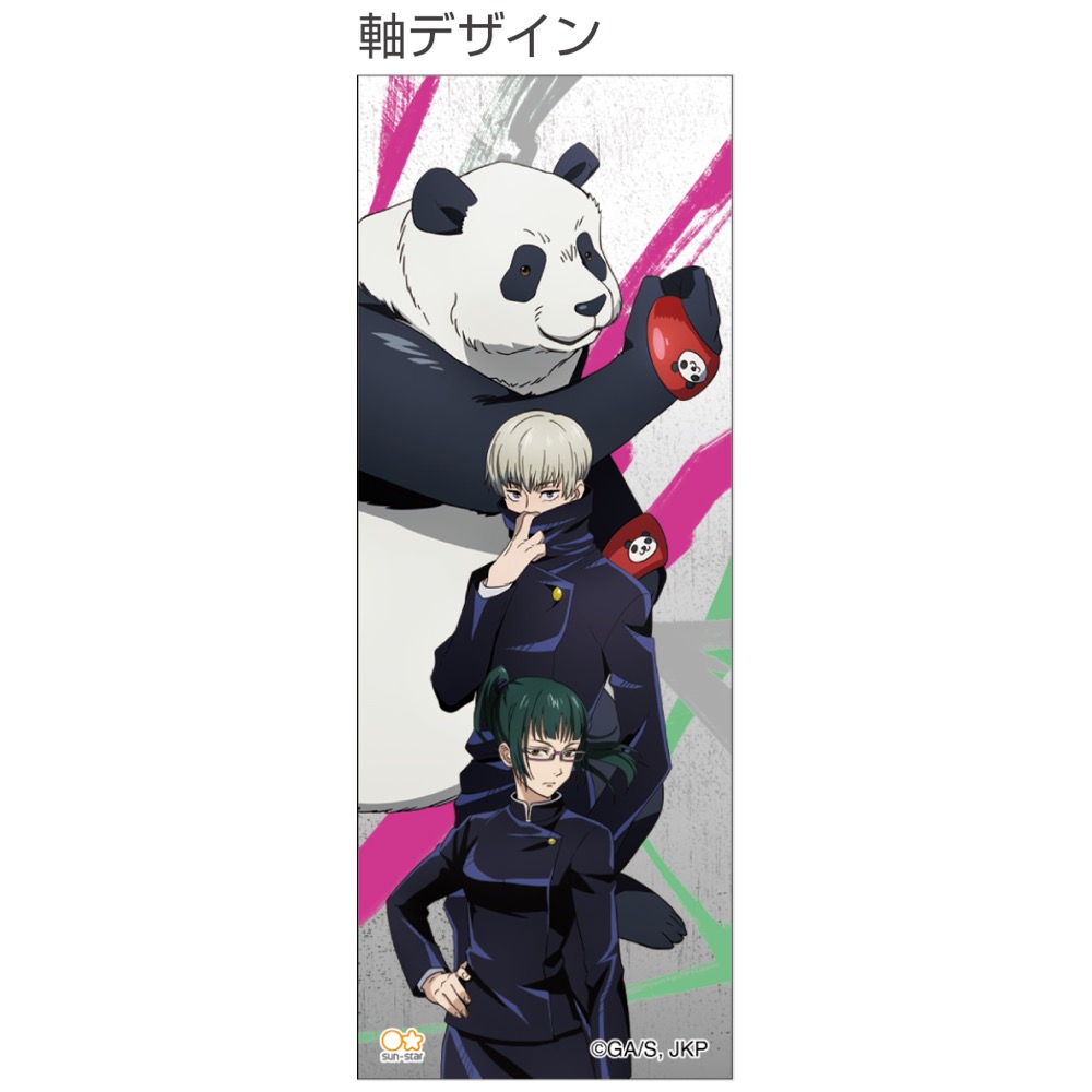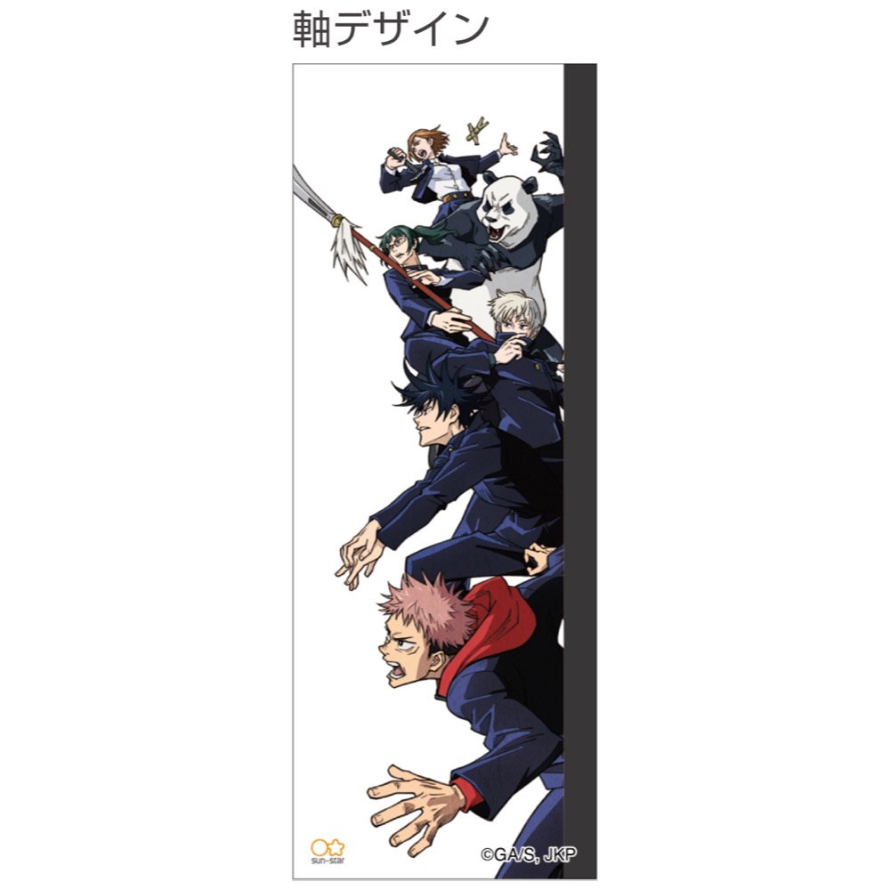 「虎杖悠仁」「伏黒恵」「狗巻棘」「禪院真希」「パンダ」「釘崎野薔薇」の6人が躍動感たっぷりにプリントされています。