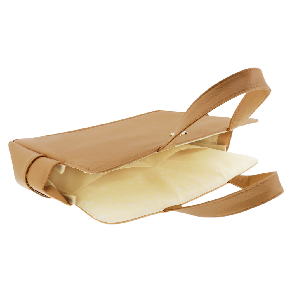 高級感のある合成皮革のキャメル生地で、チャームのゴールドがよく映えます。