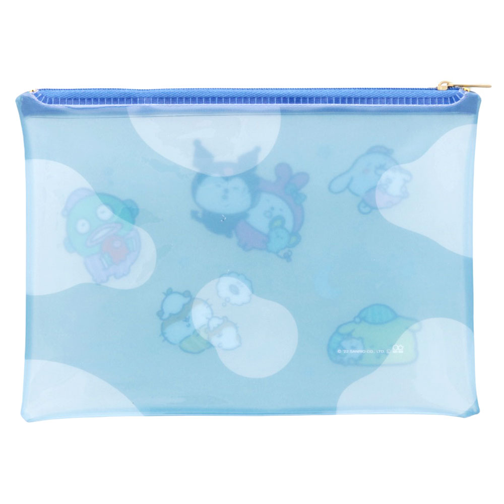 「ねむいね」デザインのフラットクリアポーチには、すやすやと眠っている「サンリオキャラクターズ」のイラストをレイアウト。