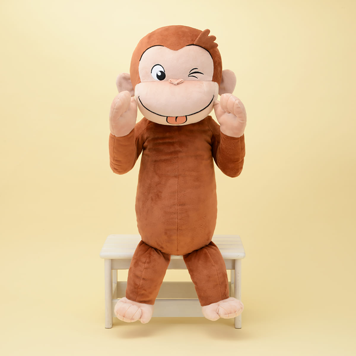 べろべろばあで遊ぶ表情が魅力的な「ジョージ」の大きなギガジャンボぬいぐるみ。