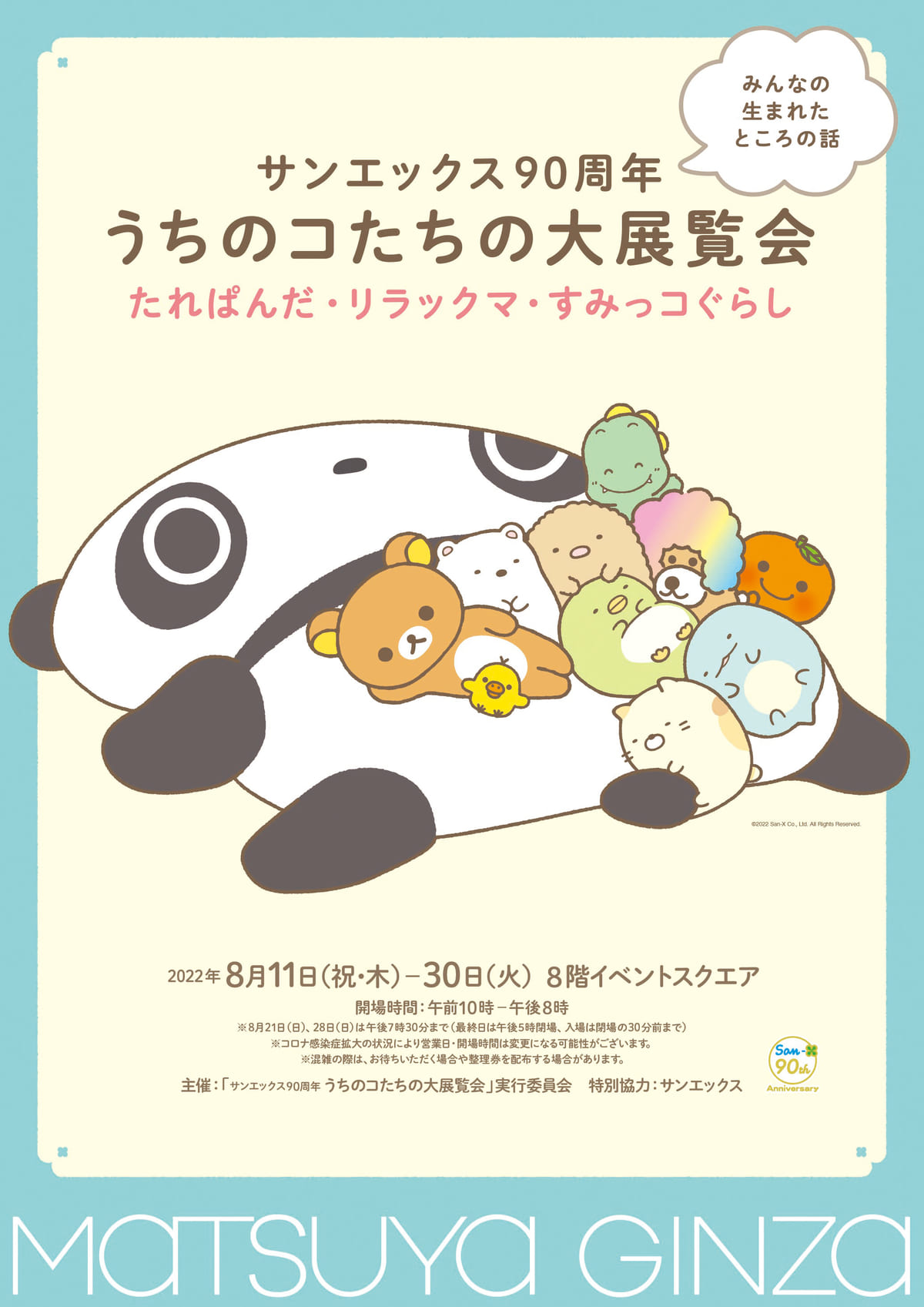 「サンエックス90周年 うちのコたちの大展覧会」は、松屋銀座を皮切りに、全国各地にて実施される大展示会です。