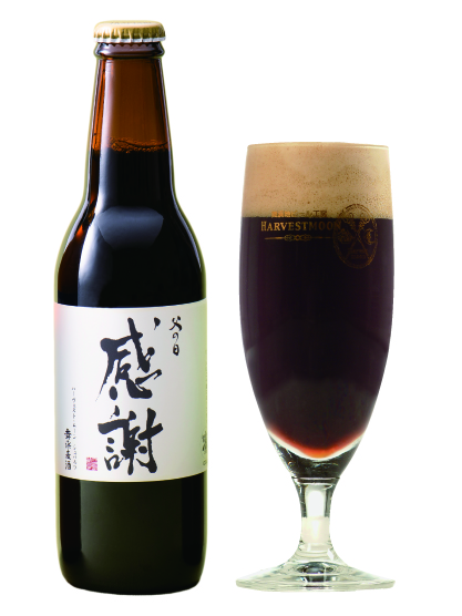 飲みやすく飽きのこない醸造責任者自慢の黒ビールには、大きく”感謝”の文字がプリントされています。