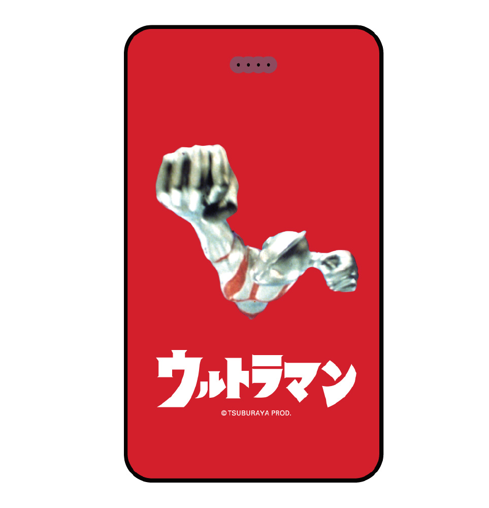 真っ赤な背景に飛び立つ「ウルトラマン」があしらわれたモバイルバッテリー。
