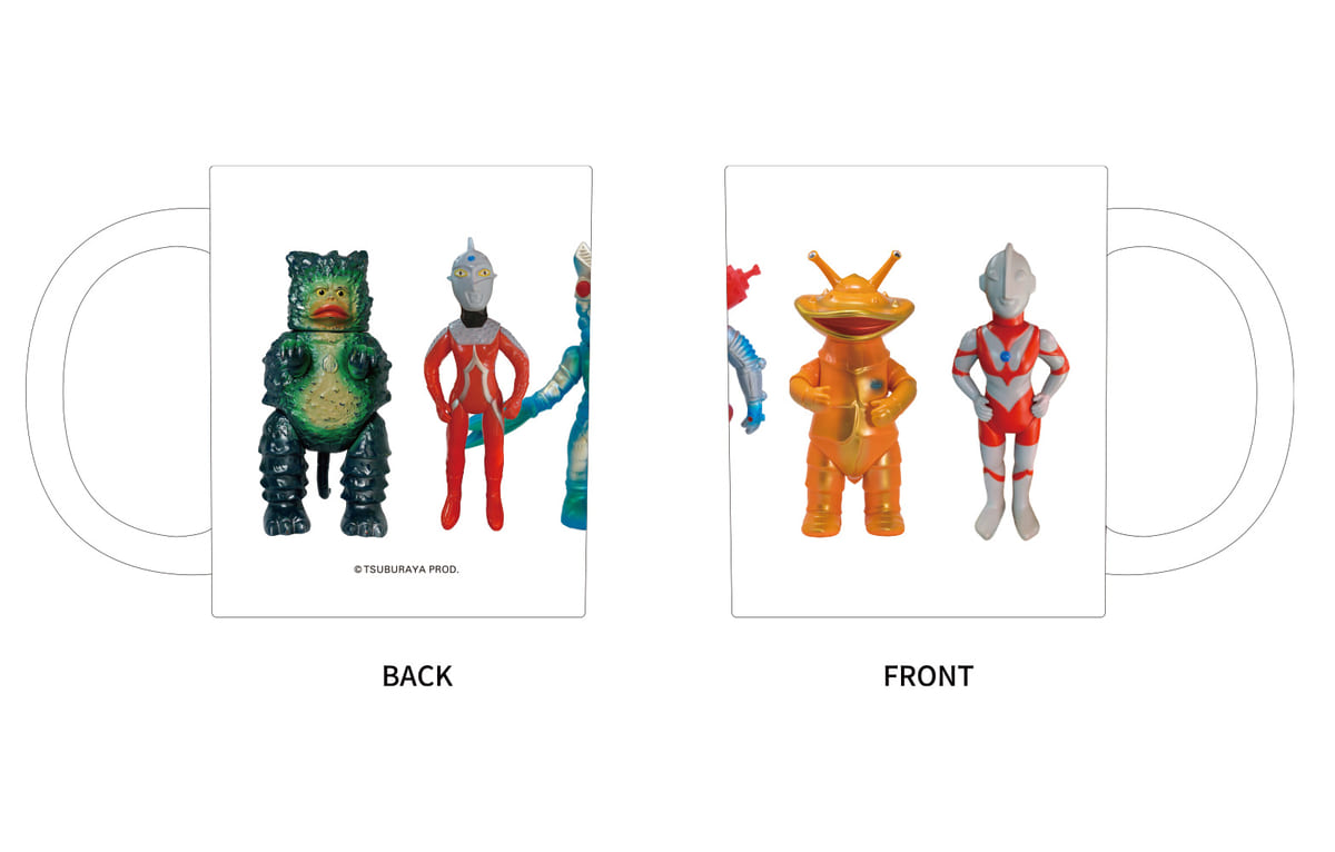 「ウルトラマン」と「ウルトラ怪獣」たちが並んだデザインのマグカップ。