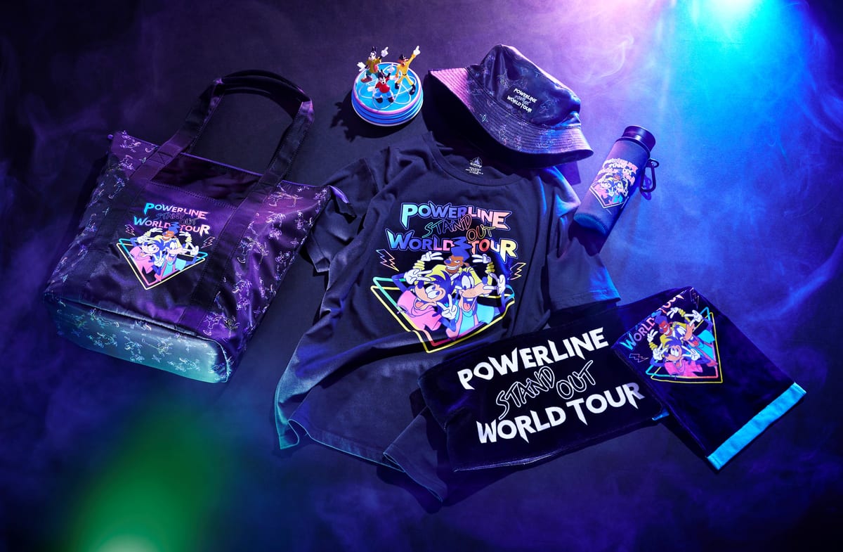 グッズのアートには「グーフィー」と「マックス」、そして「マックス」が憧れるロックスターの「パワーライン」がライブでダンスをしているシーンなどをセレクト。