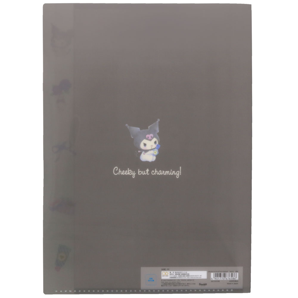 スクエアの窓からちょこんと顔を出している「クロミ」が愛らしい「ブラック」デザインの「ダイカットクリアファイル5P」