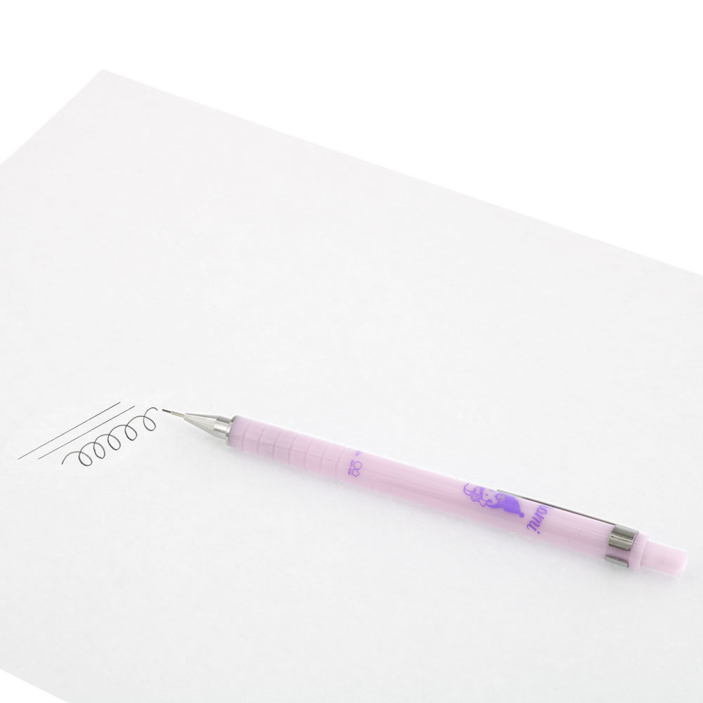 ペールピンクのボディカラーに、ぱっきりしたスミレ色で「クロミ」アートをあしらった「バイオレット」デザインの「シャープペン」