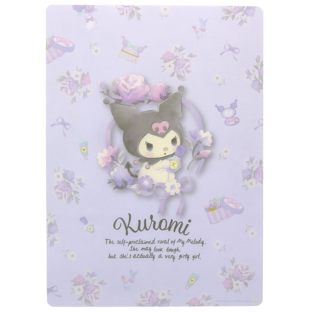 コスメとお花のパターン柄のスクエアにひょっこり顔を出している「クロミ」がとってもキュートな「下敷」です☆