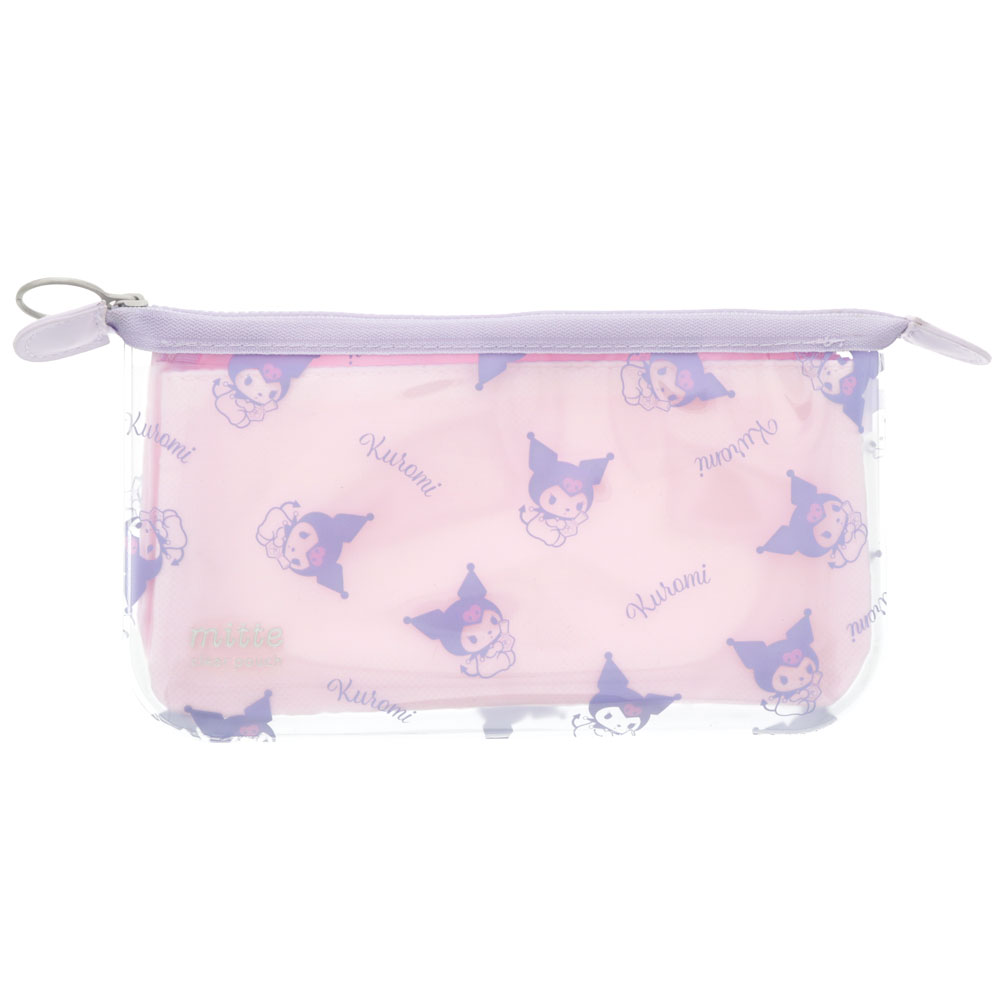 フロントにブラックカラーで「クロミ」フェイスがプリントされた「ブラック」デザインのクリアポーチ「mitte(ミッテ)」
