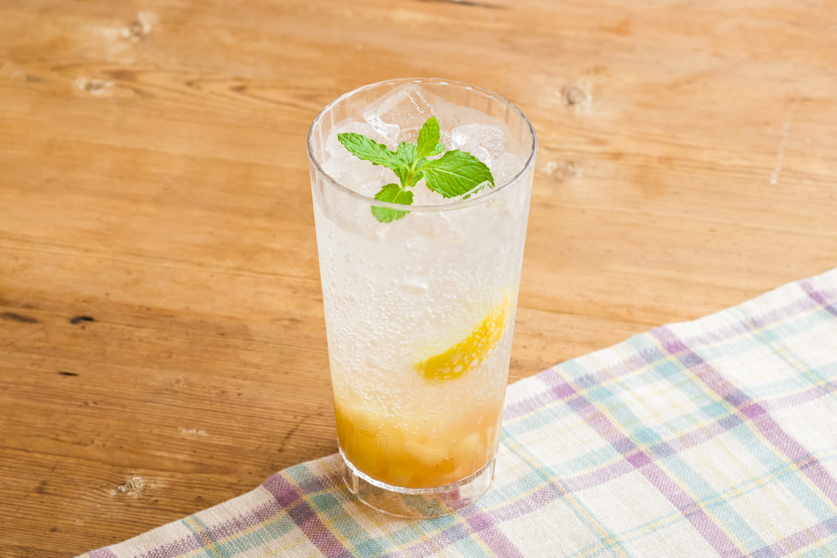 シュワっと爽やかな飲みごたえの桃ドリンク「白桃スカッシュ」