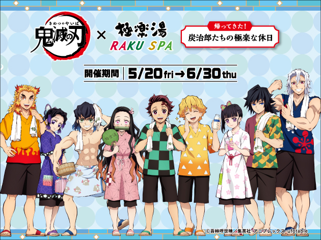 「極楽湯・RAKU SPAグループ」全国18都市29店舗にて、テレビアニメ「鬼滅の刃」とのタイアップ企画第2弾「帰ってきた!炭治郎たちの極楽な休日」を開催!