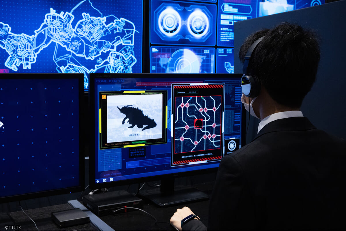 「禍威獣第8号撃退作戦」は「禍特対」の新人分析官となって、突如現れた「禍威獣」の脅威に立ち向かう体験型謎解きアトラクション。