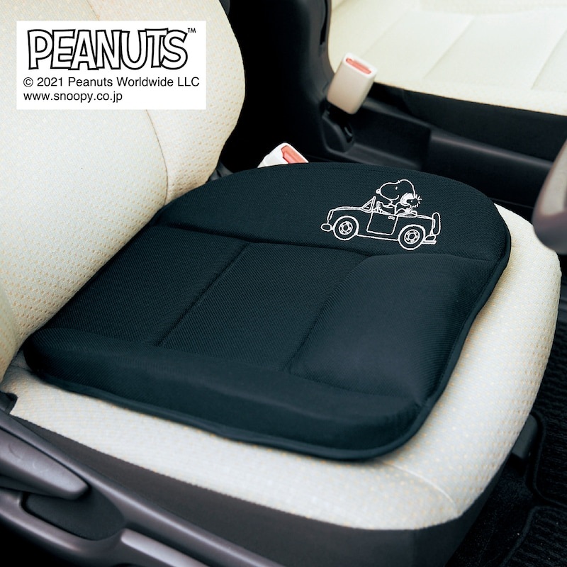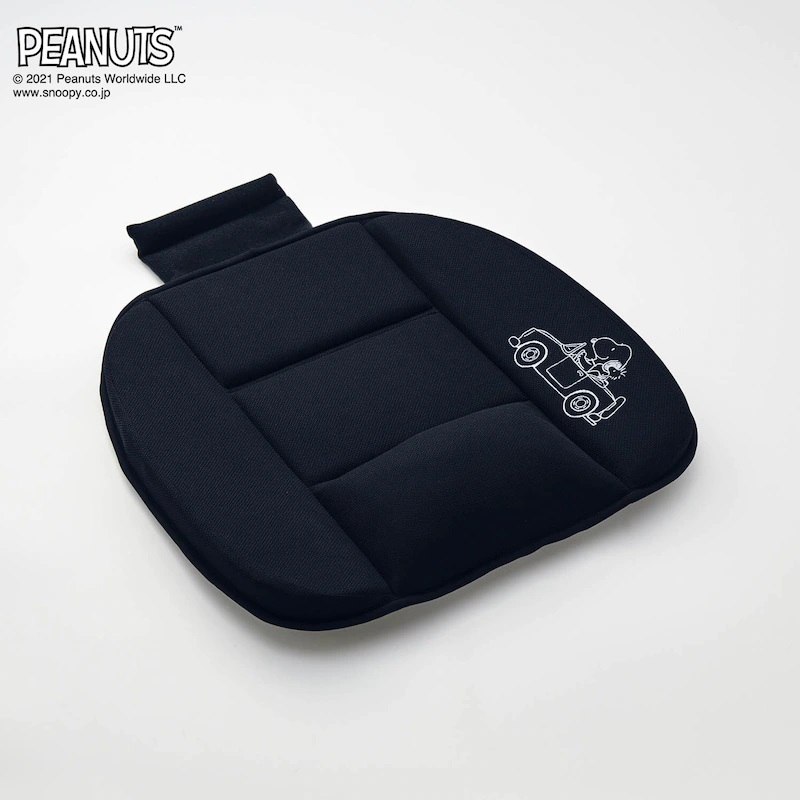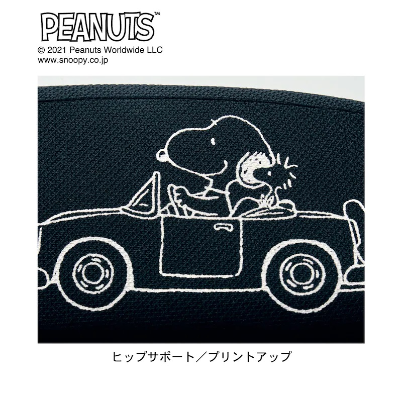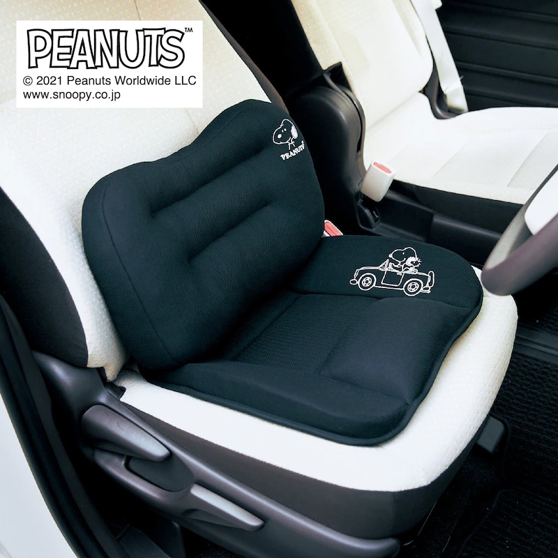 「スヌーピー」デザインのかわいいサポートクッションが、腰やお尻を支えて疲れを軽減。