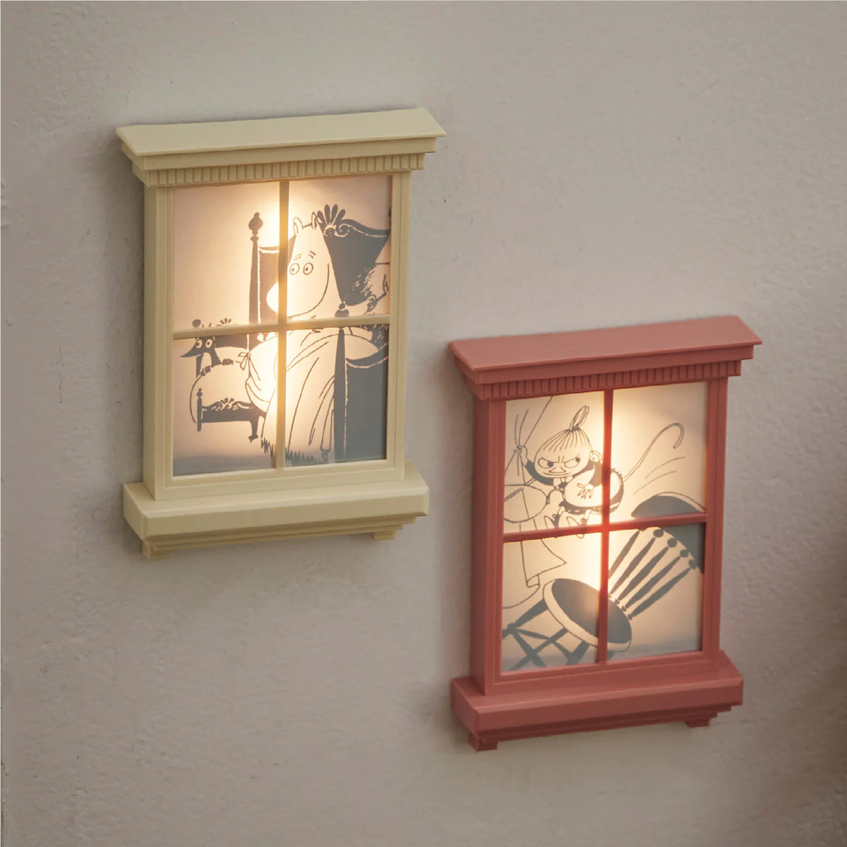 まるで「ムーミン」たちのおうちの中を覗いているような、窓枠デザインのルームライト!