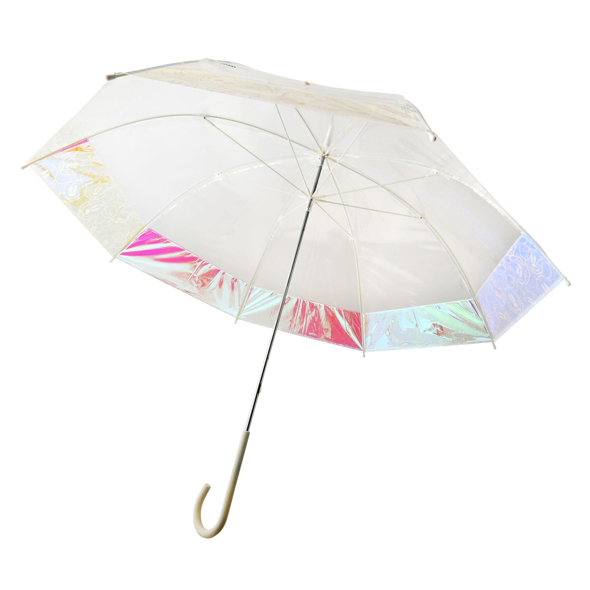 「Wpc.(ダブリュピーシー)」との共同企画グッズとして登場する、オーロラ色に輝く「ミッキーマウス」デザインの長傘。