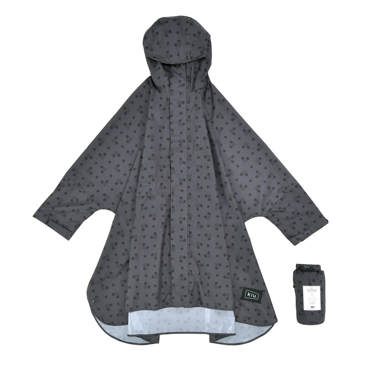 大人の外遊びを応援するブランド「KiU(キウ)」と共同企画した、ミッキーアイコンと水玉模様のレインポンチョ。