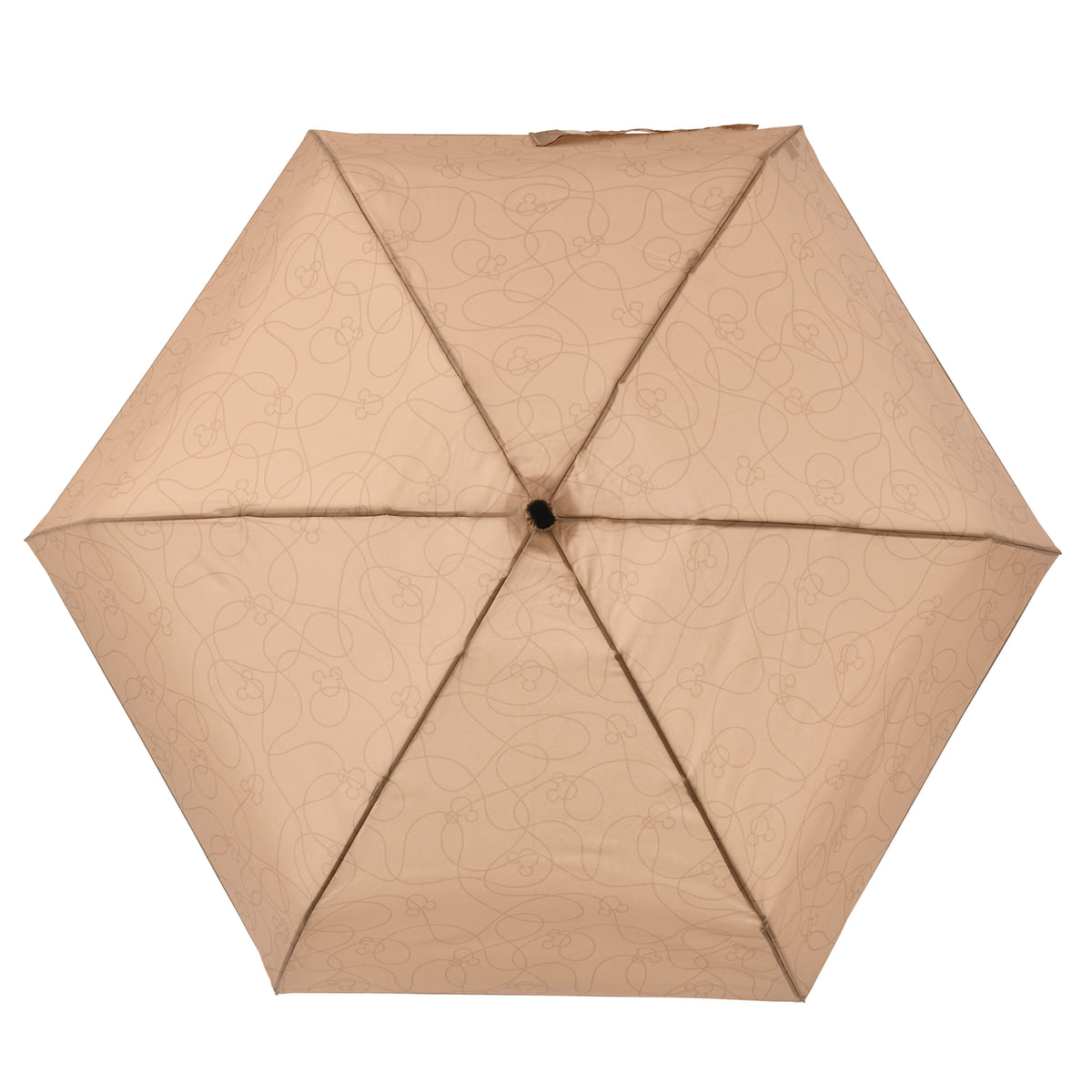 UVカット率が淡色約80%以上、濃色約90%以上の、晴れの日も使えるミッキーアイコンデザインの折りたたみ傘。
