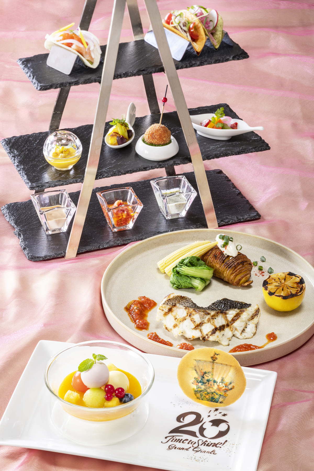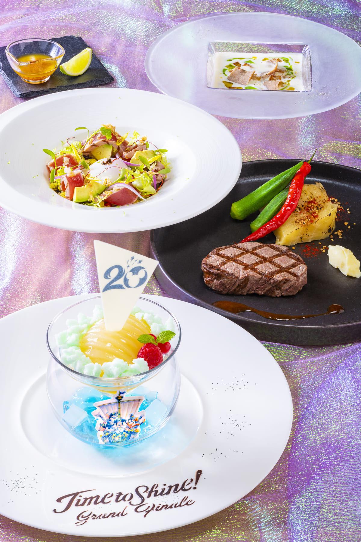 ディズニーアンバサダーホテルでは、“東京ディズニーシー20周年:タイム・トゥ・シャイン!”の節目の年にふさわしい華やかなスペシャルメニューを提供!