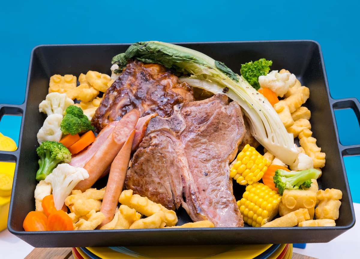 TボーンステーキとBBQ ポークリブ、厚切りベーコン、ソーセージ、ハンバーグなど子どもたちが喜ぶお肉が詰め込まれています☆