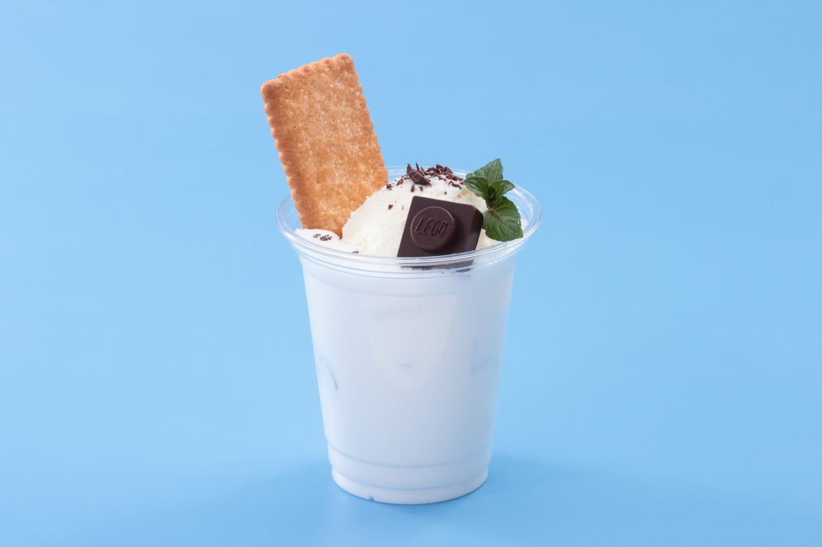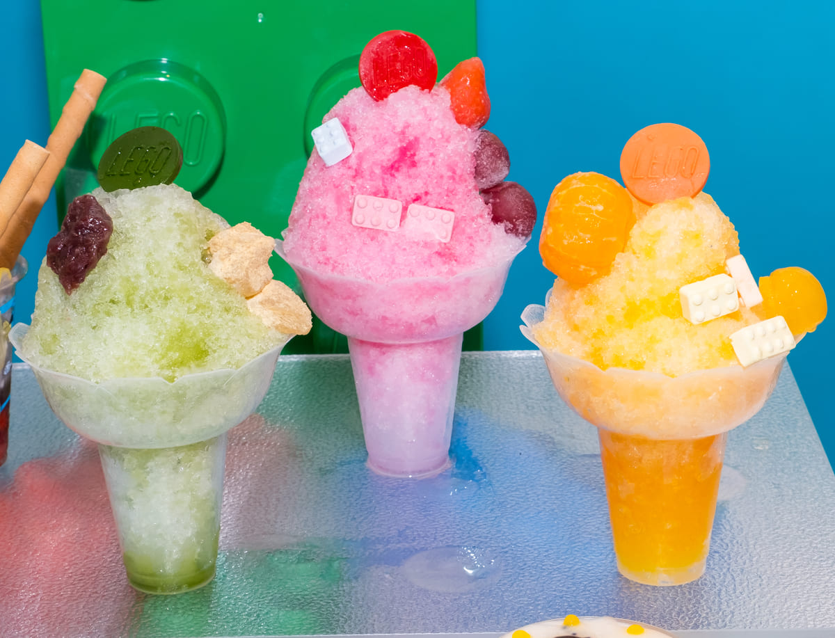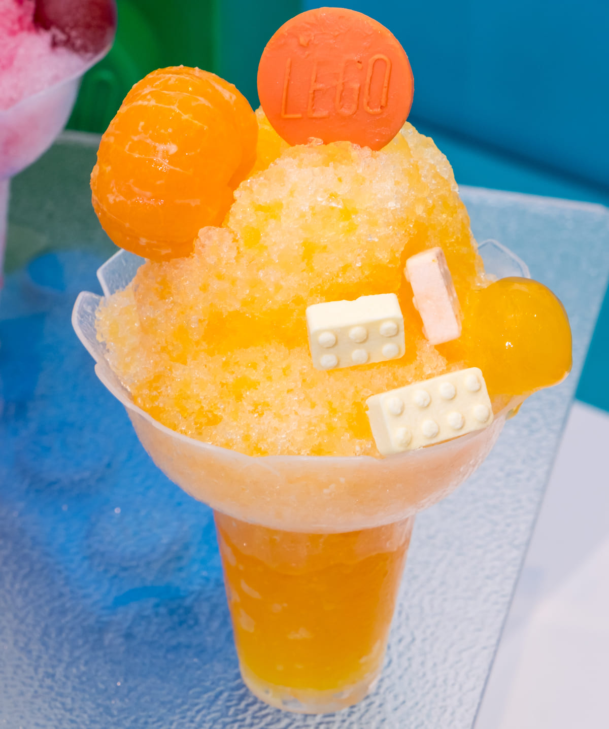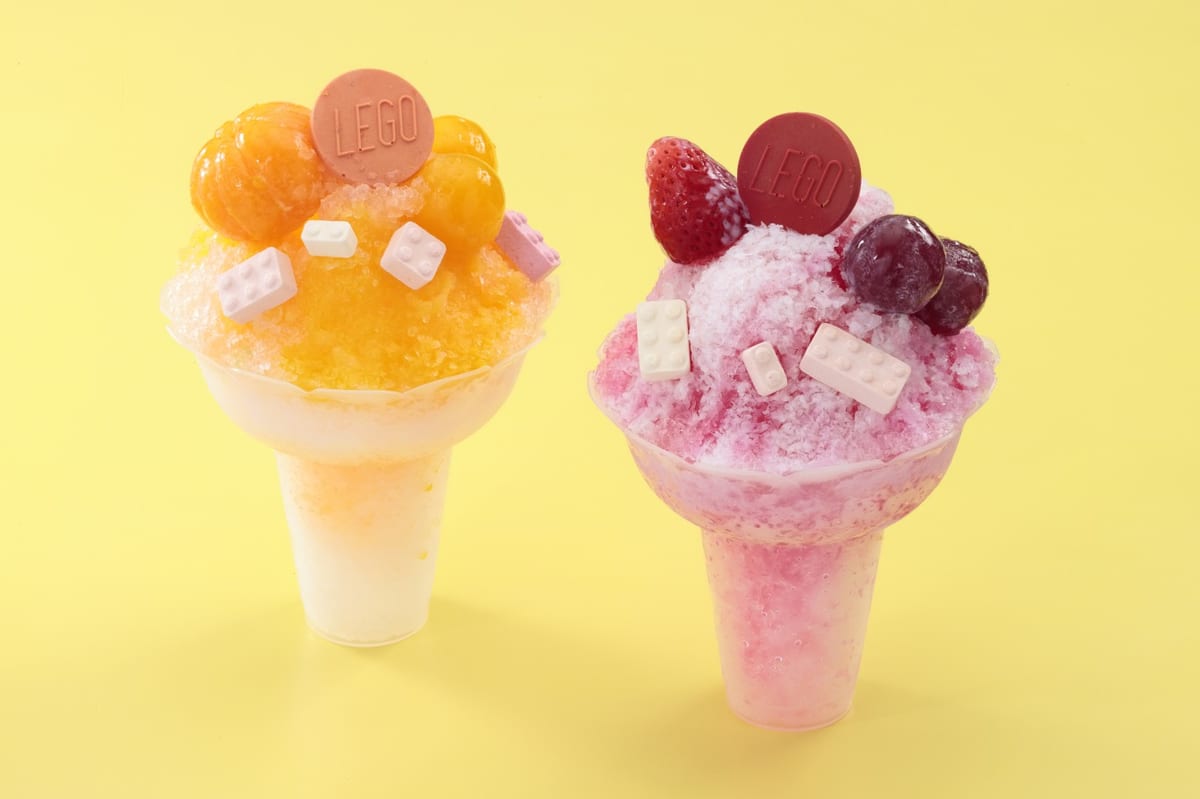 ブリックの形のラムネやチョコレートを合わせた、見た目もかわいらしいひんやり贅沢かき氷です。